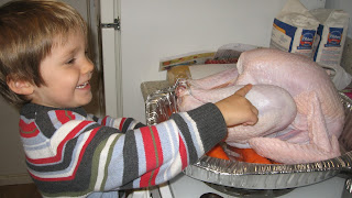 Thomas thought the trussed up turkey was hilarious!